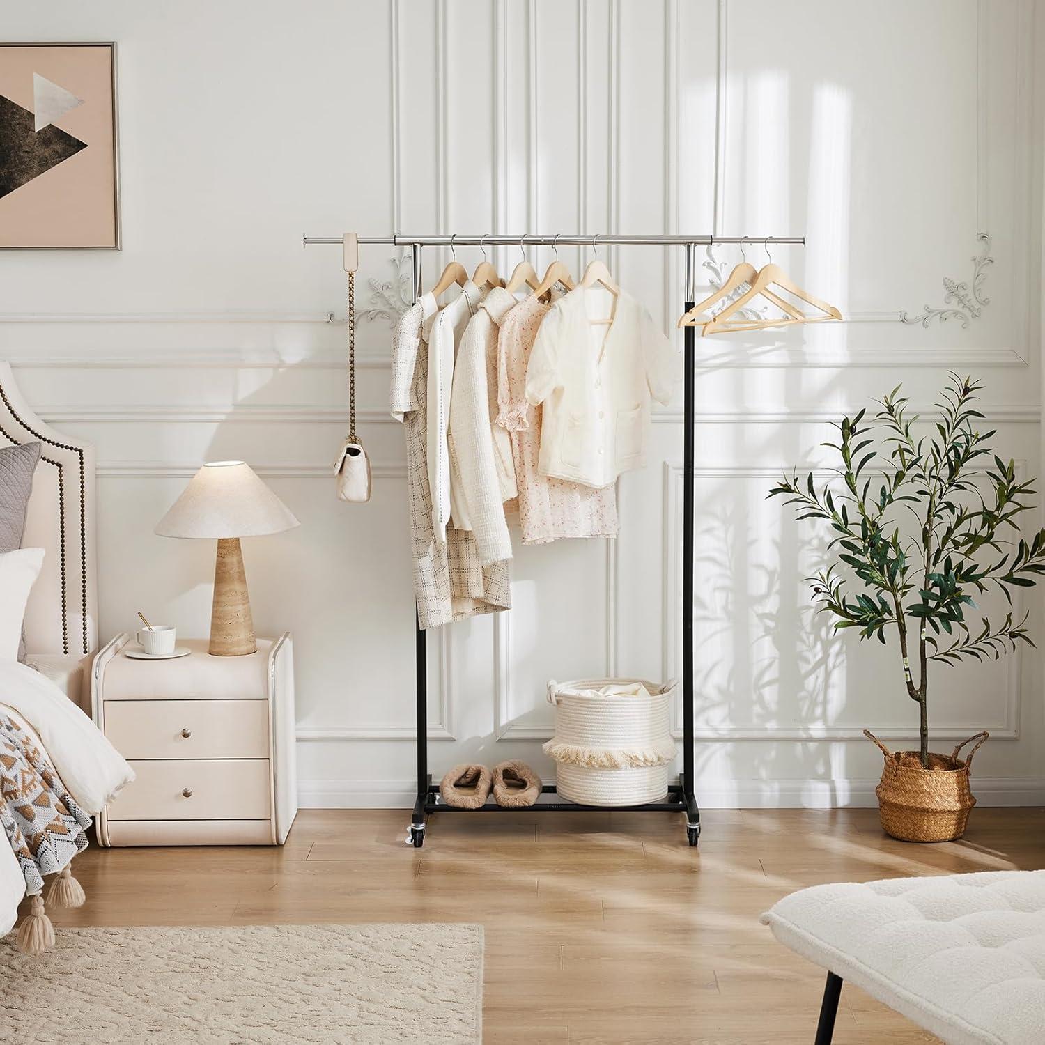 Extra Storage:The bottom of the clothes rack features a shoe rack design to store more items and make efficient use of space.Maximize the utility of the clothing rack's lower section by storing shoes, small storage boxes, and more. making it functional whether in your bedroom or coatroom to store daily items or in your laundry room to dry clothes